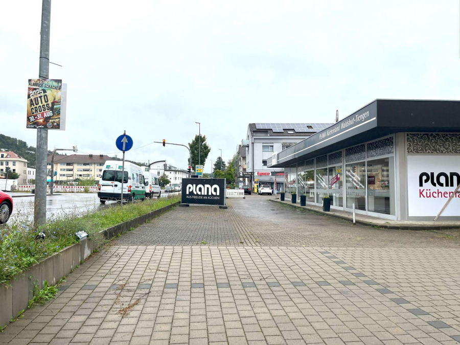 Auf zwei zusammen rund 1.376 m² großen Grundstücken befindet sich diese attraktiv gelegene Gewerbeeinheit in Waldshut-Tiengen, die derzeit als Küchenstudio genutzt wird. Der Gebäudekomplex ist mit einer Gasheizung sowie einer Photovoltaikanlage auf dem Dach ausgestattet, welche im Kaufumfang enthalten ist. Der aktuelle Mieter ist seit 2018 ansässig und verfügt über einen zehnjährigen Mietvertrag, der offiziell bis 2028 läuft. Aus aktuellem Anlass besteht jedoch die Möglichkeit einer vorzeitigen Vertragsauflösung, sodass die Liegenschaft zeitnah für neue Nutzungskonzepte zur Verfügung steht. Dadurch ergeben sich vielfältige Entwicklungsmöglichkeiten – von der Fortführung der bestehenden Nutzung bis hin zur Neukonzeption oder einem Neubau, abgestimmt auf die örtlichen baurechtlichen Vorgaben. Zusätzlich befinden sich auf den Flurstücken neun genehmigte Außenstellplätze, die das Angebot abrunden.