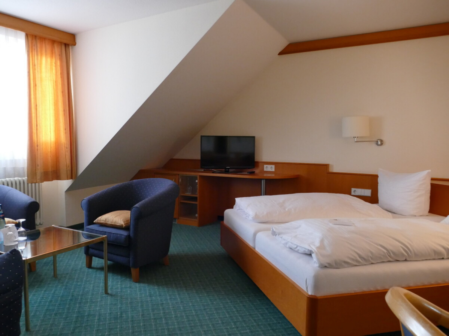 Im Hotelanwesen „Winzerstube“ treffen Tradition und Moderne aufeinander und schaffen ein harmonisches Gesamtbild bestehend aus dem Stammhaus und dem südlich angeschlossenen Neubau. Das zu Beginn des 20. Jahrhunderts errichtete Ursprüngsgebäude („Stammhaus“) umfasst eine voll ausgestattete Gastronomiefläche mit Terrassen im Erdgeschoss und 12 Doppelzimmer im Ober- & Dachgeschoss. Rustikale Holzelemente schaffen sowohl im Restaurant als auch in den Gästezimmern eine gemütliche Atmosphäre. Im Neubau stehen insgesamt 20 moderne stilvoll gestaltete Gästezimmer, davon vier Suiten, zur Verfügung. Auch ein Seminar- und Tagungsraum mit ca. 40 Sitzplätzen ist im Obergeschoss vorhanden. Die halboffene Garage mit direktem Zugang zum Aufzug, welcher den Neubau barrierefrei erschließt, bietet einen zusätzlichen Komfort für Besucher. Auf dem Grundstück stehen außerdem weitere 9 KfZ-Stellplätze im Freien zur Verfügung. Der sehr gepflegte Zustand ermöglicht dem neuen Betreiber die nahtlose Fortführung des Hotel- und Gastronomiebetriebs.