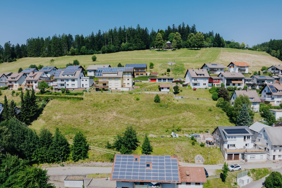In zentraler Hanglage von Gütenbach bieten wir vier Flurstücke mit einer Gesamtfläche von etwa 3.020 m² zur Bebauung an. Der gültige Bebauungsplan „obere Ortsmitte“, der im Jahr 2022 von der Gemeinde Gütenbach beschlossen wurde, soll die Nachverdichtung fördern, um dem steigenden Bedarf an Wohnraum gerecht zu werden. Der Eigentümer hat eine Entwurfsplanung für die Entwicklung der Grundstücke vorgelegt. Diese sieht den Bau von zwei Mehrfamilienhäusern mit jeweils zehn Wohneinheiten vor, inklusive ausreichend KFZ-Stellplätzen und einer Gesamtwohnfläche von ca. 1.785 m². Die Planung wurde bereits mit der Gemeinde Gütenbach abgestimmt; die Baugenehmigung muss jedoch vom Käufer eingeholt werden. Die Gemeinde Gütenbach zeigt sich grundsätzlich offen für weitere Entwicklungskonzepte innerhalb des geltenden Bebauungsplans.