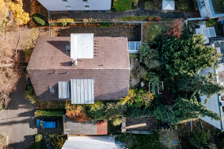 Auf einem ca. 545 m² großen Grundstück in verkehrsberuhigter Lage von Freiburg-Haslach steht dieses etwa 1975 errichtete Einfamilienhaus in Fertigbauweise zum Verkauf. Es verfügt über eine Gesamtwohnfläche von rund 194 m², die sich auf das Erd- und Dachgeschoss verteilt. Das Erdgeschoss im Hochparterre ist über eine Freitreppe von der Hauseinfahrt aus erreichbar. Dank der durchdachten Raumaufteilung und der Position des Treppenhauses lässt sich die Immobilie nach einer notwendigen Renovierung sowohl als Einfamilienhaus als auch als Zweifamilienhaus nutzen. Im Untergeschoss befinden sich zusätzlich etwa 63 m² Nutzfläche, die derzeit von einem Mitglied der Verkäuferfamilie als Tonstudio genutzt werden. Nach der flexibel möglichen Beendigung dieser Nutzung im kommenden Jahr bietet die Fläche mit separatem Eingang idealen Raum für einen Gästebereich oder eine Einliegerwohnung. Abgerundet wird das Angebot durch einen Carport mit zusätzlichem Abstellbereich für Fahrräder oder Mülltonnen.