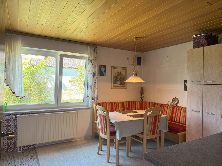 In beliebter Wohnlage von Sontheim an der Brenz befindet sich dieses gut geschnittene Einfamilienhaus aus dem Baujahr ca. 1961 auf einem attraktiven ca. 626 m² großen, sehr idyllischem Grundstück. Das Erdgeschoss umfasst rund 64,5 m² Wohnfläche und bietet einen Eingangsbereich, ein separates WC, ein Badezimmer mit Badewanne, eine großzügige Küche mit Platz für einen Esstisch, ein helles Wohnzimmer mit Zugang zur Terrasse und zum Garten sowie ein Schlafzimmer. Das Obergeschoss erstreckt sich über ca. 39,5 m² und beherbergt zwei weitere Schlafzimmer sowie ein geräumiges Duschbad. Ein zusätzliches, noch unausgebautes Zimmer eröffnet die Möglichkeit, weiteren Wohnraum zu schaffen. Auch der Einbau einer Küche wäre hier denkbar, um zwei eigenständige Wohneinheiten zu realisieren und das Haus als Zweifamilienhaus zu nutzen. Der Dachboden ist über eine Einschubtreppe erreichbar und eignet sich ideal als großzügige Abstellfläche. Im Untergeschoss befinden sich ein Kellerraum, eine praktische Heimwerkstatt, eine Waschküche mit Gartenzugang sowie der Heizungsraum. Typisch für Häuser dieses Baujahrs treten an den Kelleraußenwänden Feuchtigkeitserscheinungen auf. Im Rahmen einer Sanierung empfiehlt sich daher gegebenenfalls der Einbau einer Drainage. Ergänzt wird das Angebot durch eine praktische Einzelgarage mit Rolltor auf dem Grundstück.