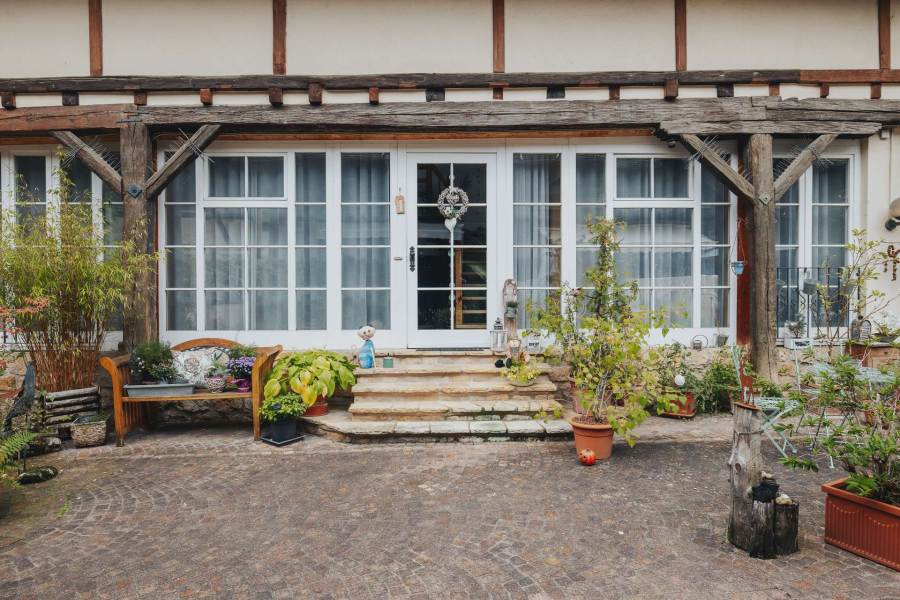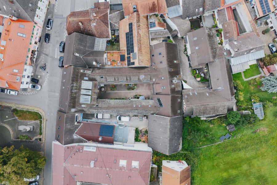 Inmitten des Ihringer Ortskerns befindet sich diese charmante Wohnanlage mit einer kleinen Gewerbeeinheit. Die Gesamtmietfläche von ca. 735 m² verteilt sich auf sechs voneinander getrennte Wohneinheiten sowie ein Gewerbeobjekt – einen Friseursalon. Das Areal ist über einen historischen Rundbogen an der Südseite zugänglich und führt in den idyllischen Innenhof, von dem aus alle aktuell vermieteten Wohnungen erreicht werden können. Die Wohnflächen reichen von ca. 49 m² bis hin zur größten Einheit, die sich über drei Etagen auf ca. 184 m² erstreckt. Teilweise wurden die Wohnungen bereits renoviert; zugleich sind historische Dielen und Fachwerkkomponenten erhalten und erneuert worden. Das Gewerbe verfügt über einen separaten Eingang direkt neben dem Torbogen. Es erstreckt sich im Erdgeschoss über ca. 77 m² und ist seit Januar fest bis mindestens Dezember 2029 vermietet. Dieses historische Anwesen bietet hervorragende Entwicklungsmöglichkeiten und eröffnet vielfältige Optionen für die Zukunft.